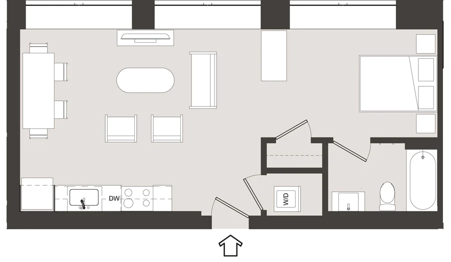 example floor plan: Unit 17 - 585 sq ft - Starting at $2100
